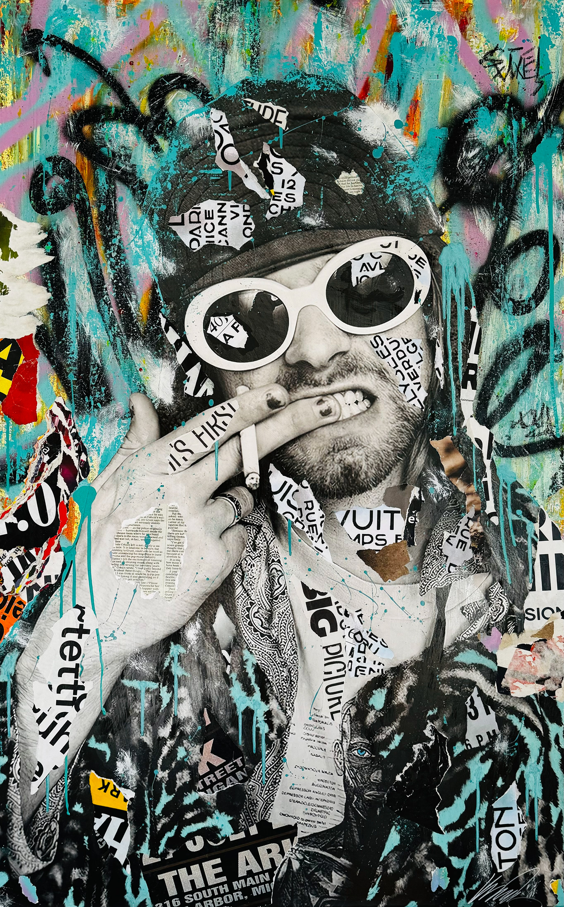 Acryl Graffiti Collage on Canvas, 90 x 120