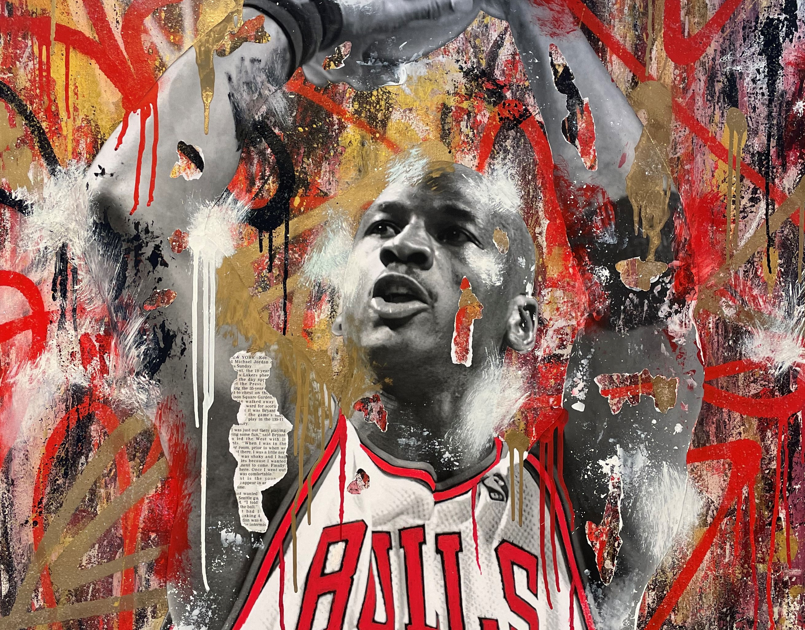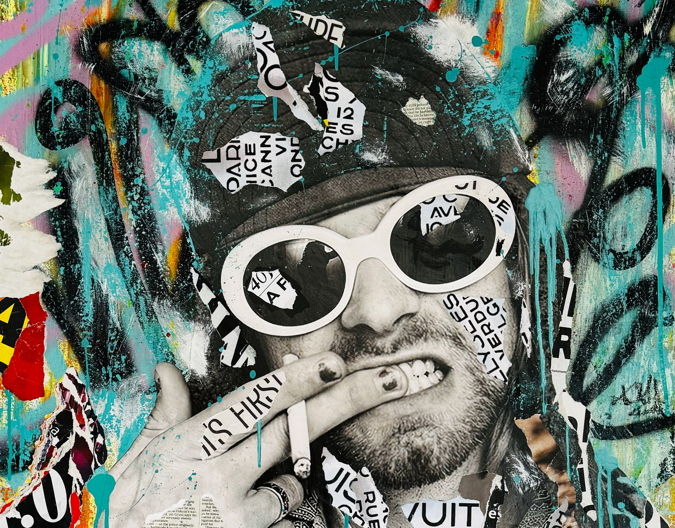 Acryl Graffiti Collage on Canvas, 90 x 120