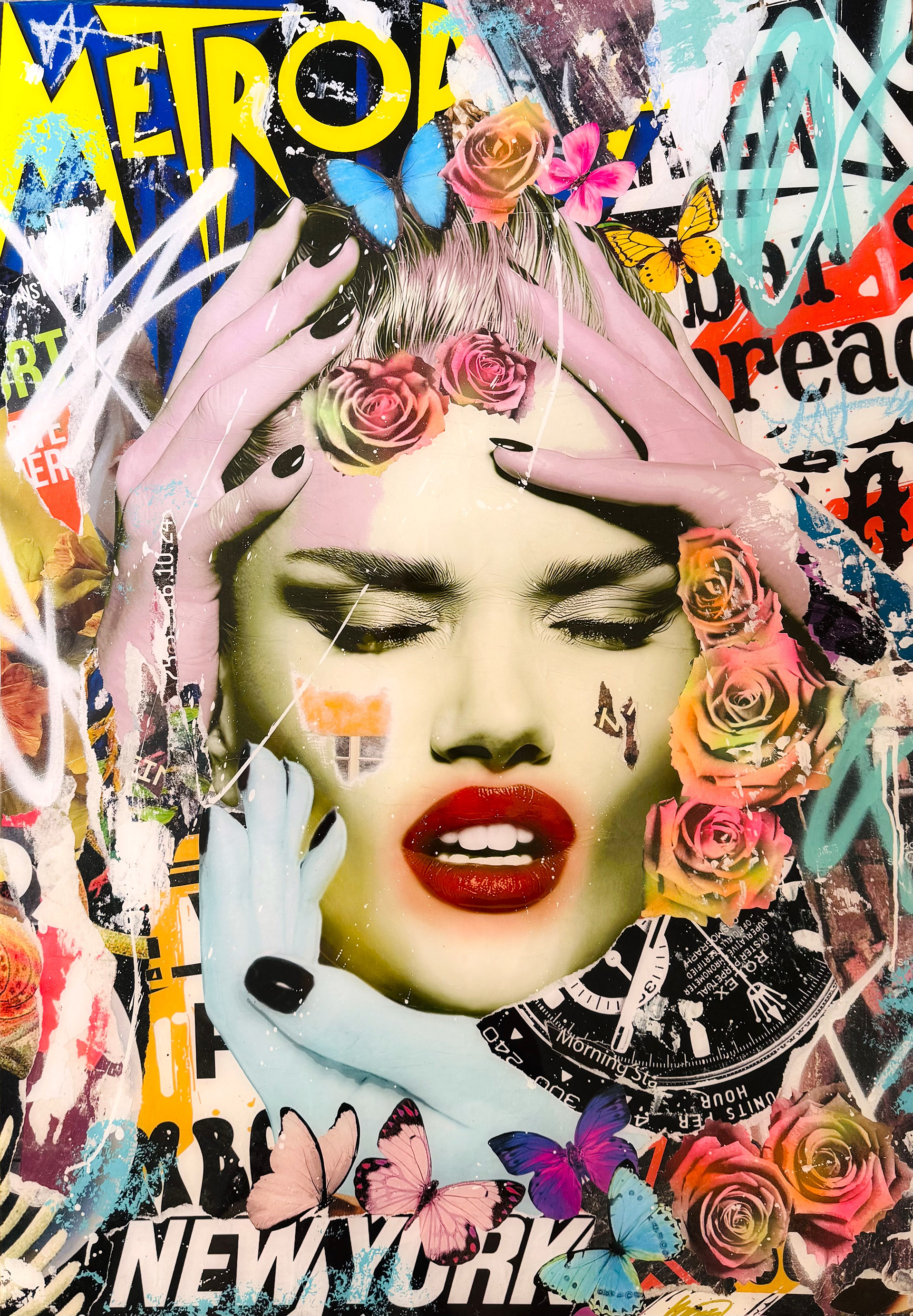 Acryl Epoxy Resin Graffiti Collage on wood 70 x 100