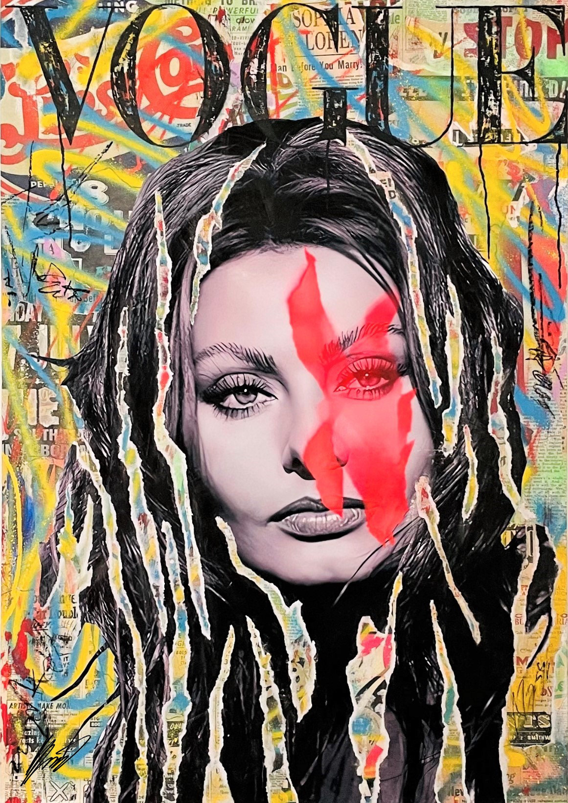 Acryl Epoxy Resin Graffiti Mixed Media Collage on wood, 70 X 100
